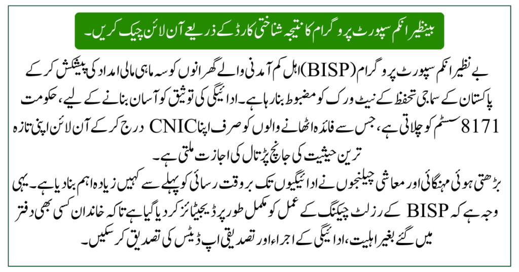 Benazir Income Support Programme BISP 8171 Result Check Online by CNIC 2026